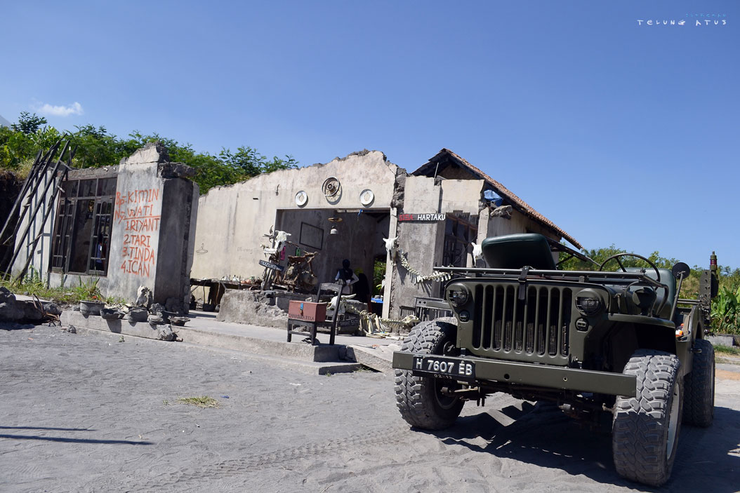 Hari sudah mulai terik ketika kami melanjutkan perjalanan menuju sebuah menara pantau yang berada diatas sebuah bukit, menara pantau ini ber konstruksi baja dan terlihat kokoh, menara ini memang menjadi destinasi wajib untuk tour penyewa jeep jalur panjang, bagi anda penggemar photography, memotret Merapi dari menara pantau ini dijamin menghasilkan gambar yang indah, disamping karena sosok merapi sendiri yang terlihat jelas dan tegas terutama kerutan kerutan dai bagian puncaknya yang telah gugur, juga bukit bukit hijau yang mengililingi dan melatarinya… sebuah pemandangan menakjubkan, perpaduan antara keangkeran Merapi dan kelembutan alam hijau disekelilingnya…